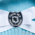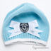Трикотажная шапочка с резинкой украшена бантом и нашивкой с вышивкой и стразой.