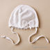 Оригнальная легкая хлопковая шапочка на завязках сдекоративной перфорацией и тканевым бантом.