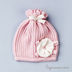 Вязаная теплая шапка с отворотом, декорирована бантом с бусинкой.