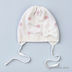 Теплая шапочка для малышей, на завязках, однотонная розовая в белый горошек, декорирована бантиком.