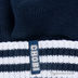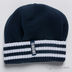 Обтягивающая шапочка с отворотом, украшенным контрастными полосами.