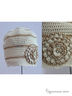 Стильная шапочка бежевая с золотыми полосками и декорированная цветком сбоку. Отличный вариант на каждый день для Вашей малышки.