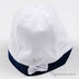 Оригинальная шапочка для девочки из двухслойного хлопкового трикотажа. Декорирована контрастной вставкой по низу изделия и милым бантиком.