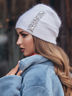 Стильная двойная шапка-бини с добавлением люрексовой нити, декорированная аппликацией с камнями в тон изделия.