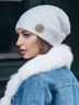 Двойная шапка-колпак с крупной фурнитурой. Дополняет изделие вплетенная блестящая нить с пайетками. Состав: 82% акрил, 15% полиэстер, 3% эластан. Цвет - белый.