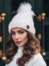 Шапка классической вязки "резинка" с отворотом и бубоном из искусственного меха.