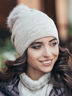 Зимняя шапка с бубоном из натурального енота, декорирована россыпью страз. Внутри в области лба и ушей утеплена флисом (ширина подкладки - 14 см). В основе изделия мелкая вязка.