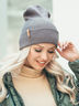 Шапка-колпак в стиле casual, связанная техникой «резинка». Модель декорирована нашивкой на подвороте.