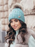 Вязанная шапка с помпоном из натурального енота, полностью утепленная мягкой флисовой подкладкой. Изюминка модели – декор в виде бусин и пришитых «пчёлок».