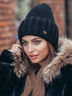 Практичная шапка классической вязки "резинка" с блестящей нитью люрекс. Изделие с отворотом и фурнитурой. Модель утеплена флисовой полоской в области лба.
