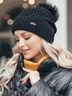 Зимняя шапка-бини с бубоном из натурального меха. Модель утеплена мягкой флисовой подкладкой.