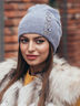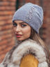 Стильная двойная шапка-бини с добавлением люрексовой нити, декорированная аппликацией с камнями в тон изделия.