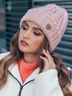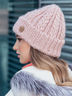 Стильная шапка-колпак с узорной вязкой и подворотом. Модель дополняет фурнитура на полочке.