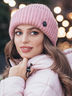 Теплая шапка-бини классической вязки "резинка" с отворотом и фурнитурой. Модель выполнена из плотной вязки средней толщины. Цвет - светло-розовый.