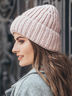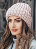 Шапка средней вязки с узором «косичка». Утеплена флисовой подкладкой. Состав: 40% шерсть, 55% акрил, 5% лайкра. Цвет изделия - пудровый.