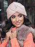 Оригинальная шапка-чалма крупной вязки. Модель дополняет брошь по центру.