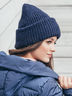 Шапка с подворотом. Состав: 50% шерсть 50% акрил. Цвет изделия – джинс.
