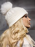 Молодежная шапка с добавлением ангоры декорирована крупным меховым помпоном. Отличный вариант для создания повседневного образа.