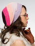 Модная полушерстяная шапочка в контрастную полоску, выдержанную в одной цветовой гамме, украшена стразами. Яркий вариант на каждый день.