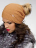 Эффектная полушерстяная шапка с крупным меховым помпоном украшена небольшим декоративным элементом. Отличный вариант на каждый день.