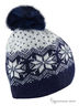 Стильная шапка с помпоном из меха песца. Модель вязаной фактуры из теплого комфортного полотна со скандинавскими узорами. Незаменимый аксессуар на холодный сезон.