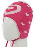 Аккуратная детская шапочка из нежнейшей итальянской пряжи с завязками и подкладкой из флиса, имеет синтепоновую вставку. Длина завязок - 33 см. Не линяет при стирке,не растягивается, удлиненная задняя часть надежно защищает шею от холода. Рисунок в форме сердечек по всей шапке придаетобразу задора и игривости.