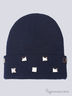 Яркий, многогранный, урбанистический образ идеально сочетается с разнообразным гардеробом современной жительницы большого города. Крупный металлический декор на трикотажном полотне основы говорит о смелости своей обладательницы и является настоящим хитом этого сезона. Теплая, двухслойная вязаная шапка декорирована квадратными металлическими кнопками серебряного/золотого цвета.