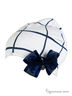Легкая тоненькая шапочка из вязаного трикотажа - изысканный аксессуар для весны и лета. Выразительный орнамент коллекции - неровная клетка выполнен в данном изделии на светлом фоне. В сочетании с темно-синими моделями, белая шапочка с орнаментом будет удачно гармонировать, создавая контраст. Украшает шапочку маленькая металлическая "монетка" с бантиком.
