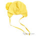 Облегающая шапочка с "ушками" на завязках украшена объемным цветком.