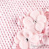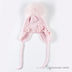 Мягкая детская шапочка нежного цвета. С пушистым помпоном, веревочками, украшена декоративными бантиками и цветами со стразами.