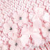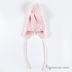 Гладкая шапочка фактурной вязки. Пушистый помпон, тонкие завязки, украшена декоративными нежными цветами, стразами и атласными бантиками.
