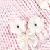 Гладкая детская шапочка нежного цвета. С пушистым помпоном, завязками, украшена бантиками и цветочками со стразами.