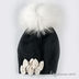 Теплая шапка плотной вязки. Большой пушистый помпон, украшена декоративными бантиками со стразами.