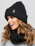Молодежная двойная шапка с отворотом. В пряжу добавлен люрекс. Украшена фирменной шильдой.
