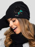 Женская двойная шапка с драпировкой складок сзади. Шапка украшена аппликацией - роза, стразами и фирменной металлической шильдой. Шапку прекрасно дополняют шарфы, снуд и перчатки.