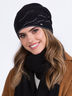 Женская двойная шапка. Шапка украшена сзади драпировкой складок, сбоку - композицией из страз и жемчужных полусфер, и фирменной шильдой. Шапку прекрасно дополняют Szalik-01.