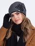 Женская двойная шапка с драпировкой складок сзади. Шапка твидовой расцветки, сбоку украшена композицией из флока. Шапку прекрасно дополняет SZALIK-01.