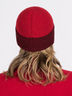 Женская двойная шапка гладкой вязки с дополнительным отворотом твидового рисунка.