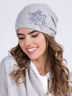 Женская двойная шапка с драпировкой складок сзади. Сбоку шапка украшена цветком из кружева с пайетками. Шапку прекрасно дополняет SZALIK-01.