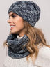 Удлиненная шапка-колпак, утеплена вторым слоем трикотажа в области ушей . В пряжу добавлена люрексовоя нить.