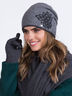 Женская двойная шапка с драпировкой складок сзади. Шапка твидовой расцветки, сбоку украшена композицией из флока. Шапку прекрасно дополняет SZALIK-01.