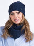 Женская одинарная шапка меланжевой расцветки с драпировкой складок сзади. Шапка украшена стразами в цвет изделия и фирменной металлической шильдой.