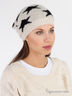 Шапка, выполненная из материала вязаной фактуры и декорированная принтом "звезды". Незаменимая вещь на прохладную погоду.