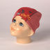 Замечательная шапка из трикотажного полотна. Декоративные элементы.