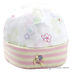 Симпатичная облегающая шапочка с отворотом украшена принтами и пришитыми маленькими цветочками.