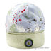 Симпатичная облегающая шапочка с отворотом украшена принтами и пришитыми маленькими цветочками.