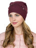 Женская шапка-бандана с внутренним отворотом. Спереди украшена композицией из страз разного диаметра и бусинами. Сзади складки придают дополнительный объем изделию.