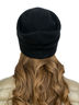 Женская шапка-бандана из 100% шерсти мериноса с флисовой подкладкой. Флисовая подкладка делает изделие комфортным в носке. Сзади шапке придают объем три декоративные складки. Украшена цветком из основного полотна и бусинами в центре цветка.