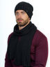 Удлиненная мужская шапка-колпак выполнена в вязке «английская резинка». Флисовая подкладка делает изделие комфортным в носке. Шапка сбоку украшена фирменной шильдой из кожи.