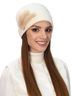 Женская двойная шапка-бандана из шерстяной пряжи. Украшена композицией из натурального меха норки, двух лепестков, выполненных их россыпи страз, и фирменной шильдой. Сзади шапке придают объем декоративные складки.